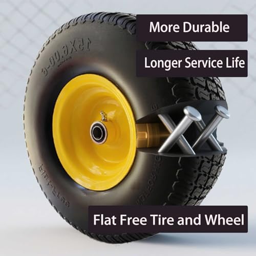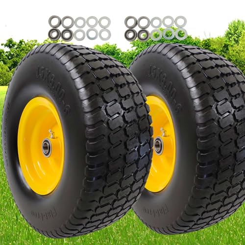 15x6.00-6 Lawn Mower Tires Flat Free,15x6x6 Tire and Wheel, 3" Centered Hub, 3/4" & 5/8" Bearings and 1" bushings, 500lbs Capacity, Compatible with Riding Mowers, Lawn Tractor Tire (2 Pack)