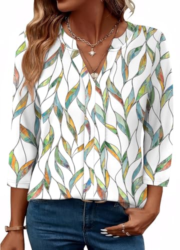 3/4 Legth Sleeve Womens Tops V Neck Work Blouses for Women Business Casual Summer Floral Beach Vacation Clothes XL