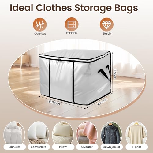 4 Pack 75L Clothes Storage Bags, Comforters Storage Bags, Collapsible Closet Organizers, Reinforced Handles, for Clothes, Blankets, Comforters & Pillows