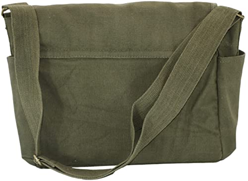ARMYU Olive Green Original Heavyweight Cotton Canvas Classic Heavyweight Military Messenger Bag + Streamer