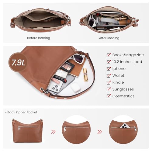 befen Genuine Leather Hobo Crossbody Bags for Women, Brown Soft Real Leather Handbags Womens Crossbody Shoulder Bag Everyday Hobo Purse with Adjustable Strap & Tassel for Work& Daily & Travel