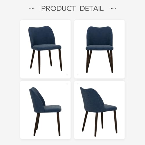 COLAMY Upholstered Dining Chairs Set of 2, Modern PU Leather Dining Room Kitchen Side Chair with Padded Seat and Wood Legs Restaurant/Cafe, Blue