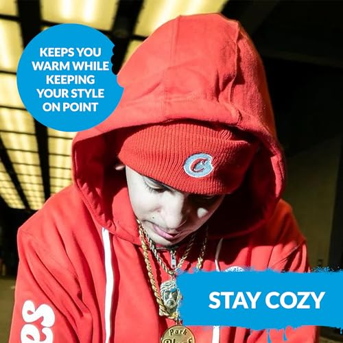 COOKIES C-Bite Knit Beanie – Warm Winter Hat with Fold Over Cuff, Bold Logo Patch, Streetwear Style, Cozy Soft Knit Material, One Size Fits Most, Casual Beanie for Men & Women - Red with White Logo.