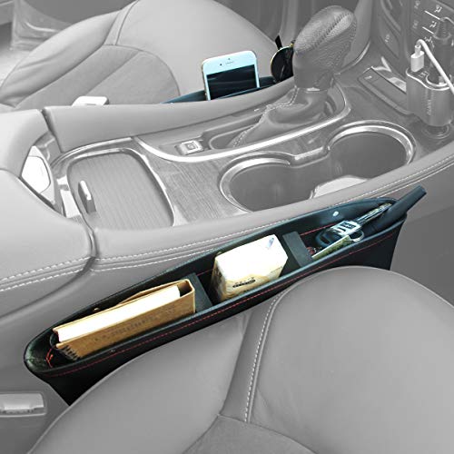 Coolrunner 2 Set Car Seat Gap Organizer, Car Seat Gap Filler, PU Full Leather Car Seat Crevice Storage Box Universal Fit in Between Car Seat Catcher for Phone Keys Cards Pens Coins(Black)