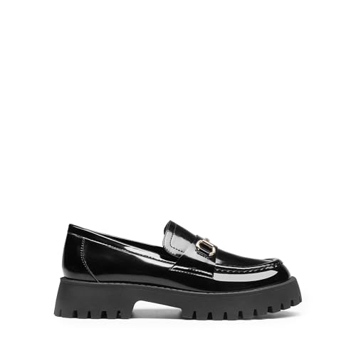 DREAM PAIRS Loafers for Women Platform Chunky Penny Loafer Slip On Casual Dressy Business Shoes with Arch Support,Size 6.5,Black-Patent,DWUMLS2531