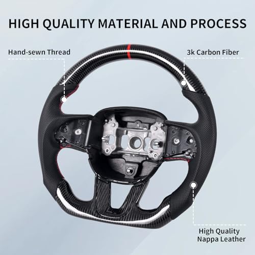 EASSAFEX Carbon Fiber Steering Wheel for Dodge Charger/Challenger/Durango/Jeep Grand Cherokee/SXT/GT/RT/SRT/Heallcat 2015-2020, D-shaped Flat-bottom Perforated Leather Grip