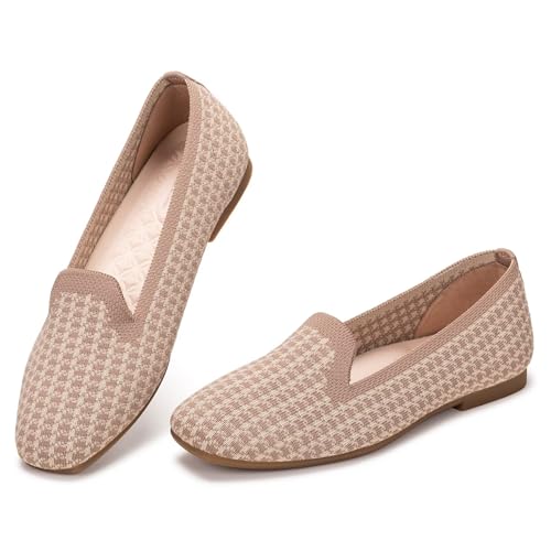 Frank Mully Women's Loafer Flats Square Toe Comfortable Office Work Shoes, Cute Penny Loafer Slip On Walking Driving Shoes Brown Grid, 6.5