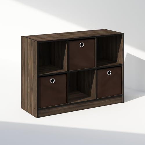 Furinno - Cubic Multipurpose Clothing & Closet Storage Organizer Shelf with Bin Drawers, 6-Cube - Columbia Walnut/Dark Brown