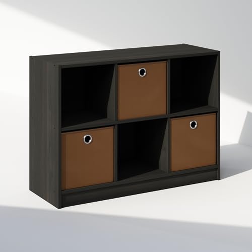 Furinno - Cubic Multipurpose Clothing & Closet Storage Organizer Shelf with Bin Drawers, 6-Cube - Espresso/Brown
