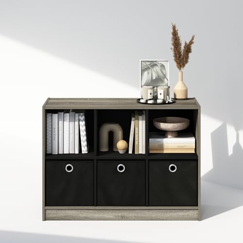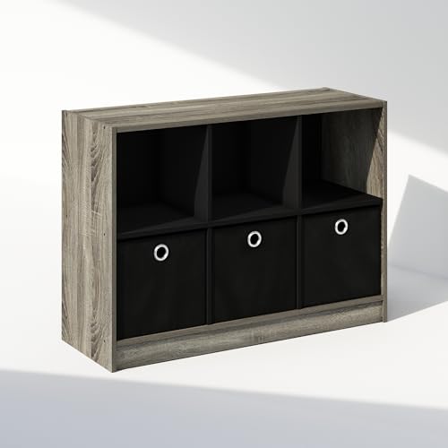 Furinno - Cubic Multipurpose Clothing & Closet Storage Organizer Shelf with Bin Drawers, 6-Cube - French Oak/Black