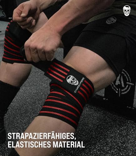 Gymreapers Knee Wraps (Pair) with Straps for Squats, Weightlifting, Powerlifting, Leg Press, and Cross Training - Flexible 72" Knee Wraps for Squatting - for Men & Women - 1 Year Warranty(Red)