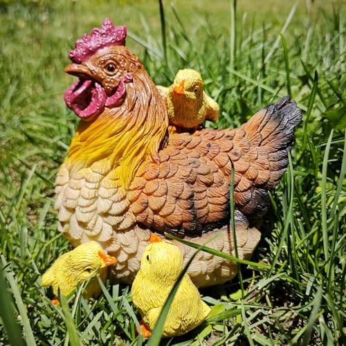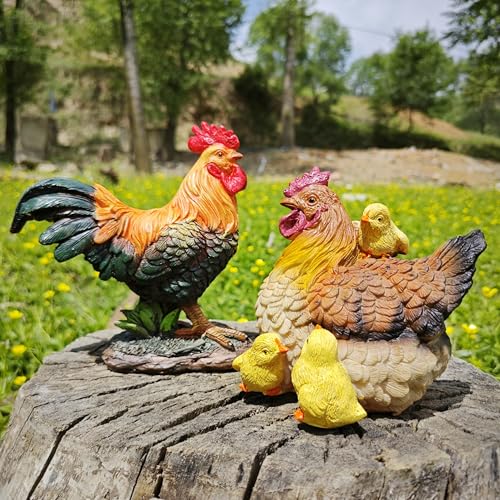 Hen Chicken Figurine, 4.7" Lifelike Chicken Statue Resin Garden Statue for Outdoor Kitchen Yard Outside Lawn Farmhouse Decoration