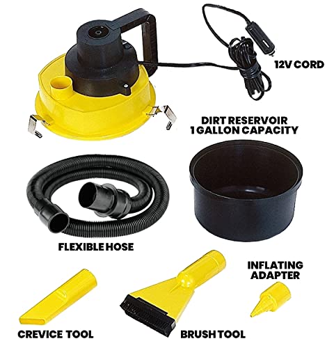 Koolatron 12V Portable Wet/Dry Canister Vacuum and Inflator w/ 4 Nozzles
