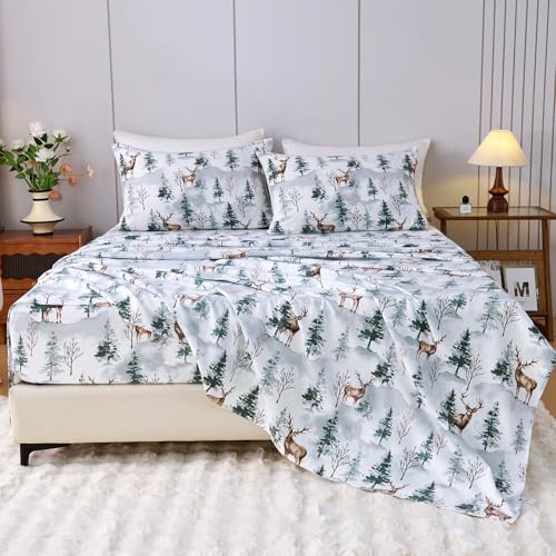 LANYETON 100% Cotton Flannel Sheets, Ultra Soft Cozy Warm Bed Sheets Set for All Season, 16" Deep Pocket, 4PC, Queen