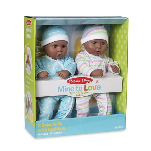 Melissa & Doug Mine to Love Twins Tyler & Taylor 15" Dark Skin-Tone Boy and Girl Baby Dolls with Rompers, Caps, Pacifiers, Multi - Multi - Size: One Size