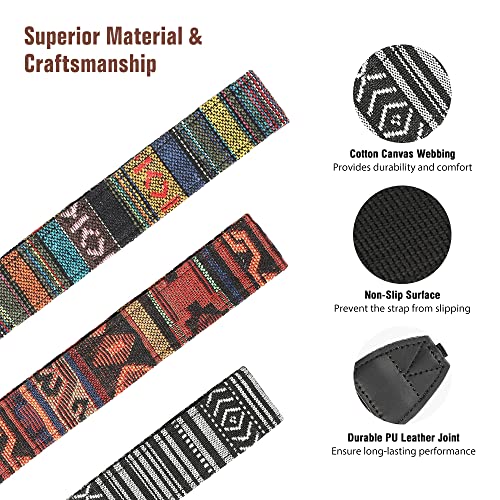 MoKo Camera Strap, Retro Cotton Canvas Woven Strap Universal Shoulder Neck Sling Belt for All DSLR/SLR Cameras Canon/Sony/Nikon, Adjustable Thin Strap for Adults & Kids, Black & White