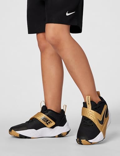 Nike Little Kid's Team Hustle D Basketball Shoes, Black/Black-Metallic Gold-White, 11C