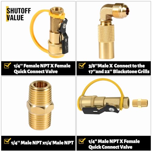NQN 12FT Propane Quick Connect Hose for RV to Gas Grill, RV Quick Connect Propane Hose with 1/4" Safety Shutoff Valve, Quick Disconnect Propane Hose with Elbow Adapter for Blackstone 17"/22" Griddle