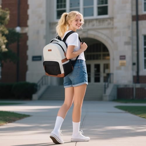 RealCool Laptop Backpack, 31L Travel Backpacks Gift for Women Men, Fits up to 15.6-17 Inch,Water Resistant College Bookbag, for School Business Trip (Beige-Black)