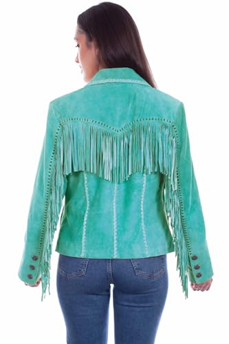 Scully Vintage Fringe - Women's Leather Jacket - Turquoise / Large