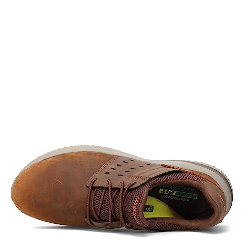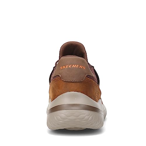 Skechers Men's Delson 3.0-Ezra Leather Bungee Lace Slip On Sneaker, Brown, 10.5