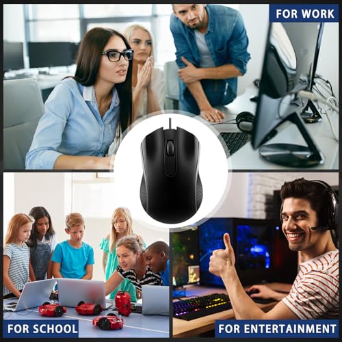 Tellegloww 6 Pcs Wired USB Computer Mouse Bulk 3 Button Corded Wired Mouse for Laptop Desktop Computer Mice for PC Office Home Supplies Operation Christmas Bulk(Black)