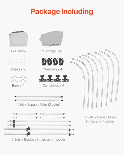 VEVOR 4 Bow Boat Bimini Tops, 600D Polyester Canopy with Aluminum Alloy Frame, Waterproof & Sun Shade Boat Awning Canopy with Storage Bag, 2 Support Poles, 4 Straps, 96"Lx(85"-90")Wx54"H, Light Grey