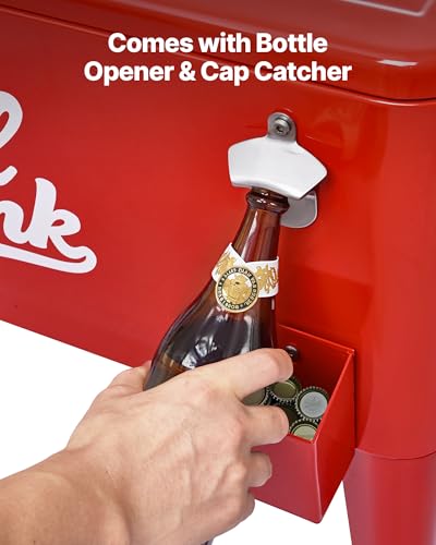 VEVOR 80 Quart Rolling Ice Chest, Holds up to 50 Bottles / 110 Cans, Portable Patio Party Bar Drink Cooler Cart with 4 Swivel Casters (2 with Brakes), Beverage Cooler Trolley with Bottle Opener, Red