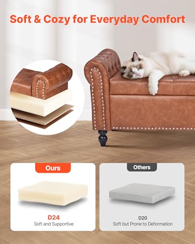 VEVOR Button-Tufted Storage Ottoman Bench, Rolled Arm PU Leather Bench with Solid Wood Legs, Modern Shoe Benches Seat for Entryway, Upholstered End of Bed Benches for Living Room, Dining Room, Brown