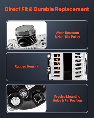 VEVOR Car Alternator 11598, Fit for Dodge Challenger V6 3.6L 2015-2021, Charger 2011-2021, Durango 2011-2020, Jeep Grand Cherokee 11-20, Ram 1500 13-15, Automotive Replacement Alternator 4210007040