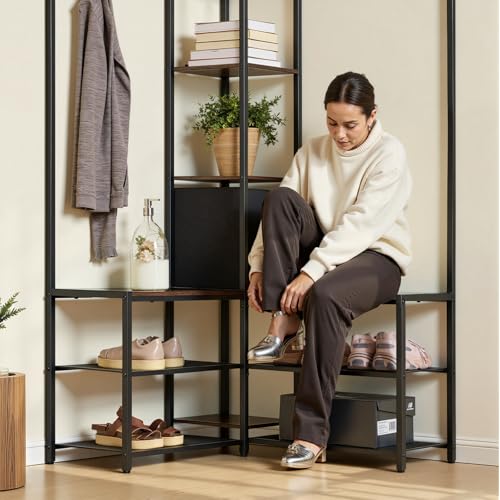 VEVOR Corner Hall Tree with Shoe Bench, 70.9 in Coat Rack with Hooks and Steel Frame, Freestanding Clothes Shoes Rack Storage Organizer with Anti-Tip Set, for Entrance, Closet, Office, Rustic Brown