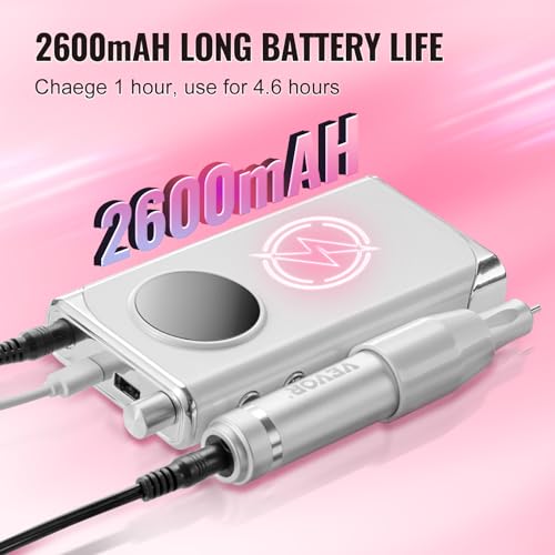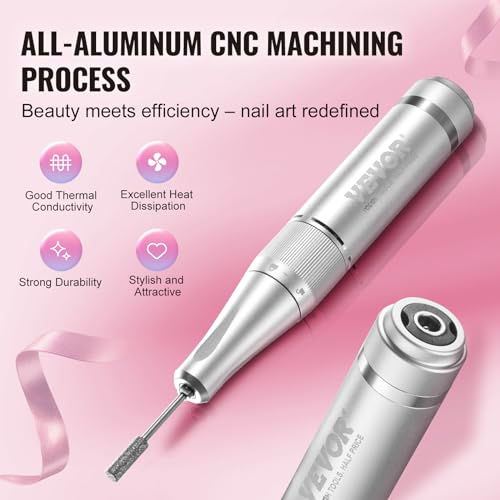 VEVOR Electric Rechargeable Nail Drill, 40,000RPM Portable Cordless Nail E File Machine, LCD-Display Acrylic Gel Grinder Tool with 6 Bits and 50PCS Sanding Bands for Manicure Pedicure Carve Polish