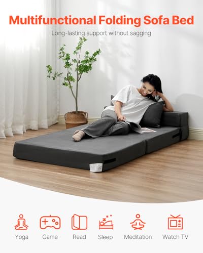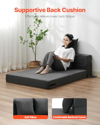 VEVOR Folding Sofa Bed, 3-in-1 Foldable Couch Bed with 2 Pillows and Washable Cover, 25D High Density Memory Foam Convertible Sleeper Chair Bed, Futon Couch for Living Room, Bedroom, Dark Grey(Twin)