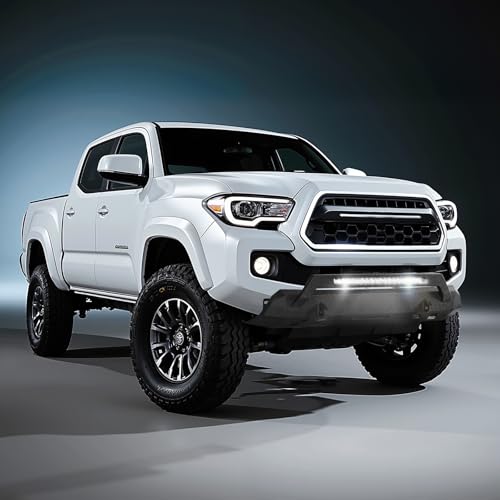 VEVOR Front Bumper Compatible with 2016-2023 Toyota Tacoma, Pickup Truck Bumper with LED Light Bar, Winch Plate & D-Rings Mounts, Heavy-Duty Steel Front Bumper with E-Coating