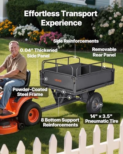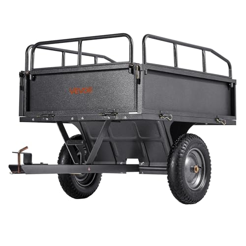 VEVOR Garden Utility Trailer, 10 Cu. Ft & 500lbs Capacity, ATV UTV Hauling Trailer, Tow Behind Steel Dump Cart with 14" Tires, Hand Pull or Foot Pedal, Heavy Duty Yard Trailers for Lawn Mower Tractor