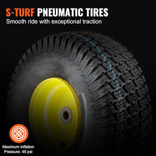 VEVOR Lawn Mower Tires with Rim, 15x6-6" Tubeless Tractor Tires, 2-Pack Tire and Wheel Assembly, S-Turf Pneumatic Tires, 3" Offset Hub, 3/4" Bushing Size, 16 PCS Adapters for Riding Mower Lawn Tractor