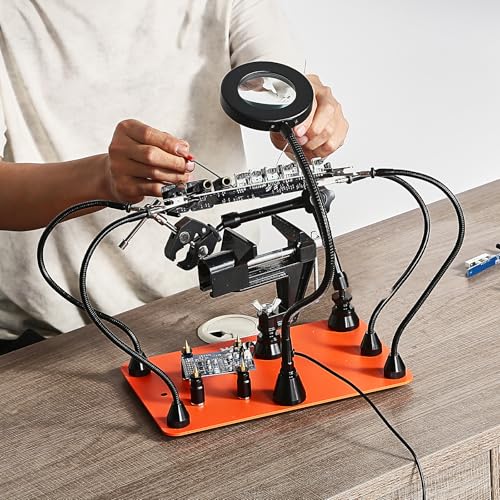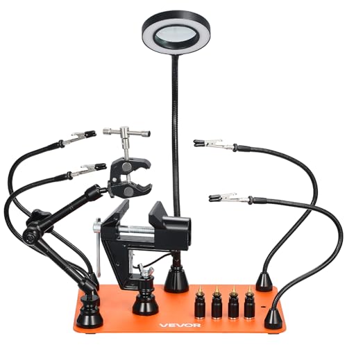 VEVOR Magnetic Helping Hands Soldering Station, 4 Arms Third Hand Tool, with Vise, 3X LED Magnifying Lamp, 4 PCB Holder & 360 Hot Air Gun Holder, Soldering Helper for Electronic Repair Craft Hobby DIY