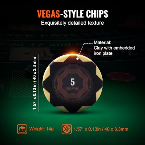 VEVOR Poker Chip Set, 500-Piece Poker Set, Complete Poker Playing Game Set with Carrying Case, Heavyweight 14 Gram Casino Clay Chips, Cards, Buttons and Dices, for Texas Hold'em, Blackjack, Gambling
