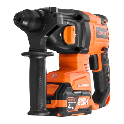 VEVOR Rotary Hammer Drill, 7/8 in SDS-Plus Cordless, 20V Battery Powered Rotary Hammer, Brushless, Including Battery, Charger, 3 Drill Bits, Flat Chisel, Pointed Chisel, Carrying Case, for Concrete