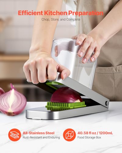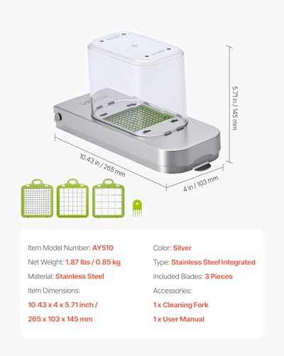 VEVOR Vegetable Chopper, Food Veggie Cutter with 3 Stainless Steel Blades, Onion Slicer with Container, Salad Potato Dicer Kitchen Gadgets & Essentials Home Appliances Tools for Easy DIY, Silver