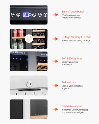 VEVOR Wine and Beverage Refrigerator, 24 in Dual Zone Wine Cooler, Built-in & Freestanding Fridge with Glass Doors, Adjustable Shelves, Digital Temperature Control, 64 Cans and 20 Bottles Capacity