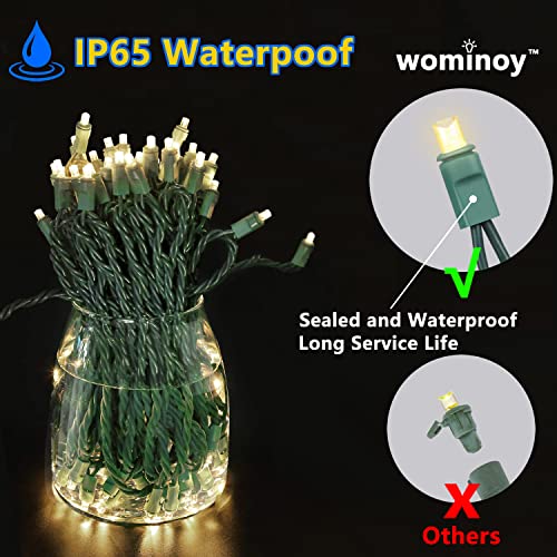 wominoy 25ft 50 Counts Warm White LED Christmas Lights - Commercial Grade White Christmas Lights Outdoor Waterproof, LED String Lights Indoor 5mm Wide Angle Green Wire, Xmas Tree Lights, IP:65, UL